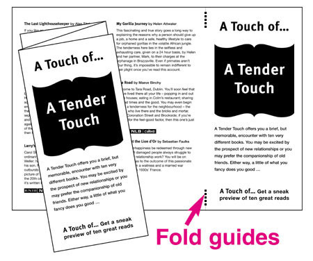 The downloadable A3 booklist PDF files are designed for use by a commercial printer and should be supplied to the printer with instructions that this is a gatefold leaflet, tick marks and fold lines to be added. It would be helpful to supply the printer with a copy of this web page.